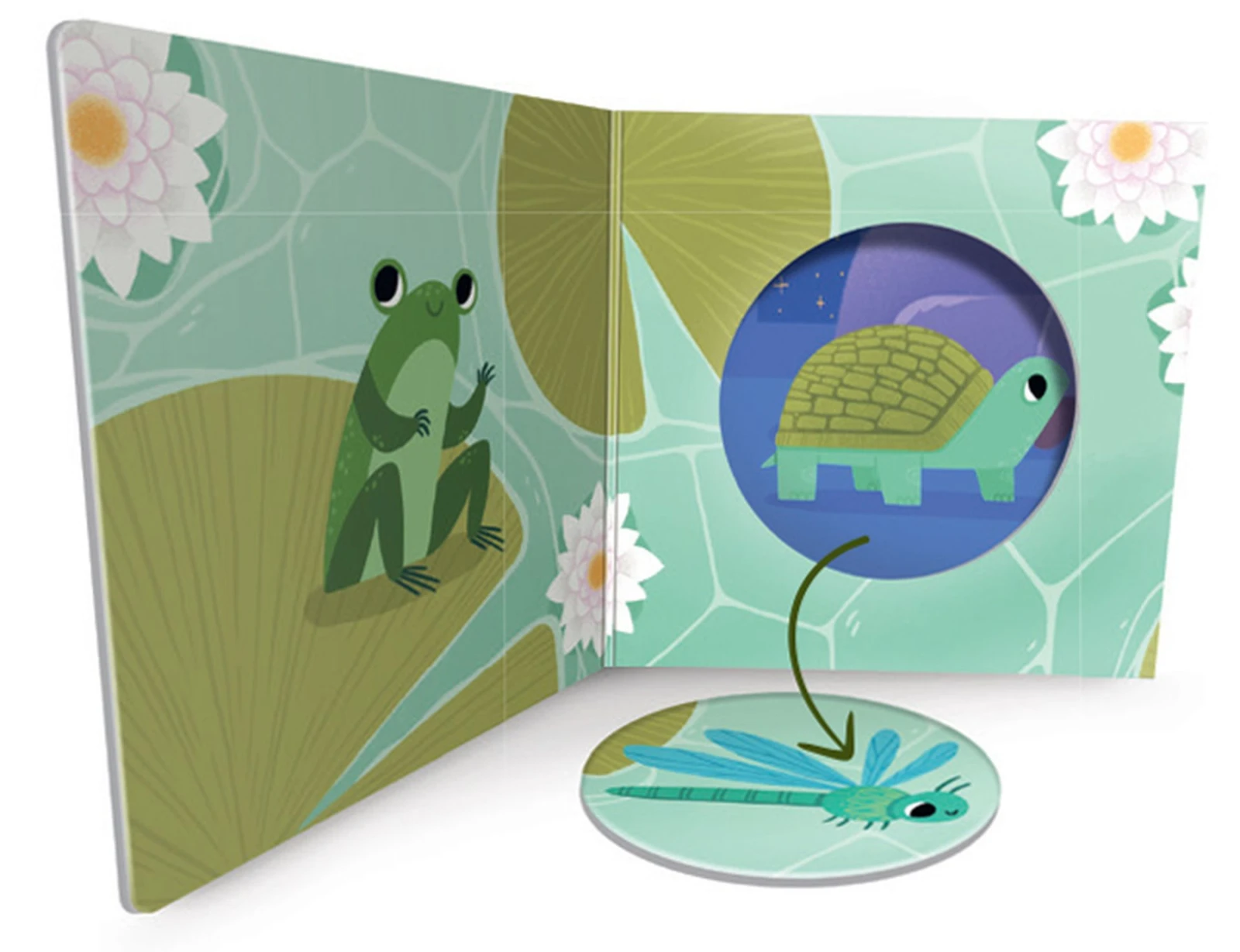 - Výřezy ve stránkách - každý výřez představuje prázdné místo pro jeden z kulatých žetonů