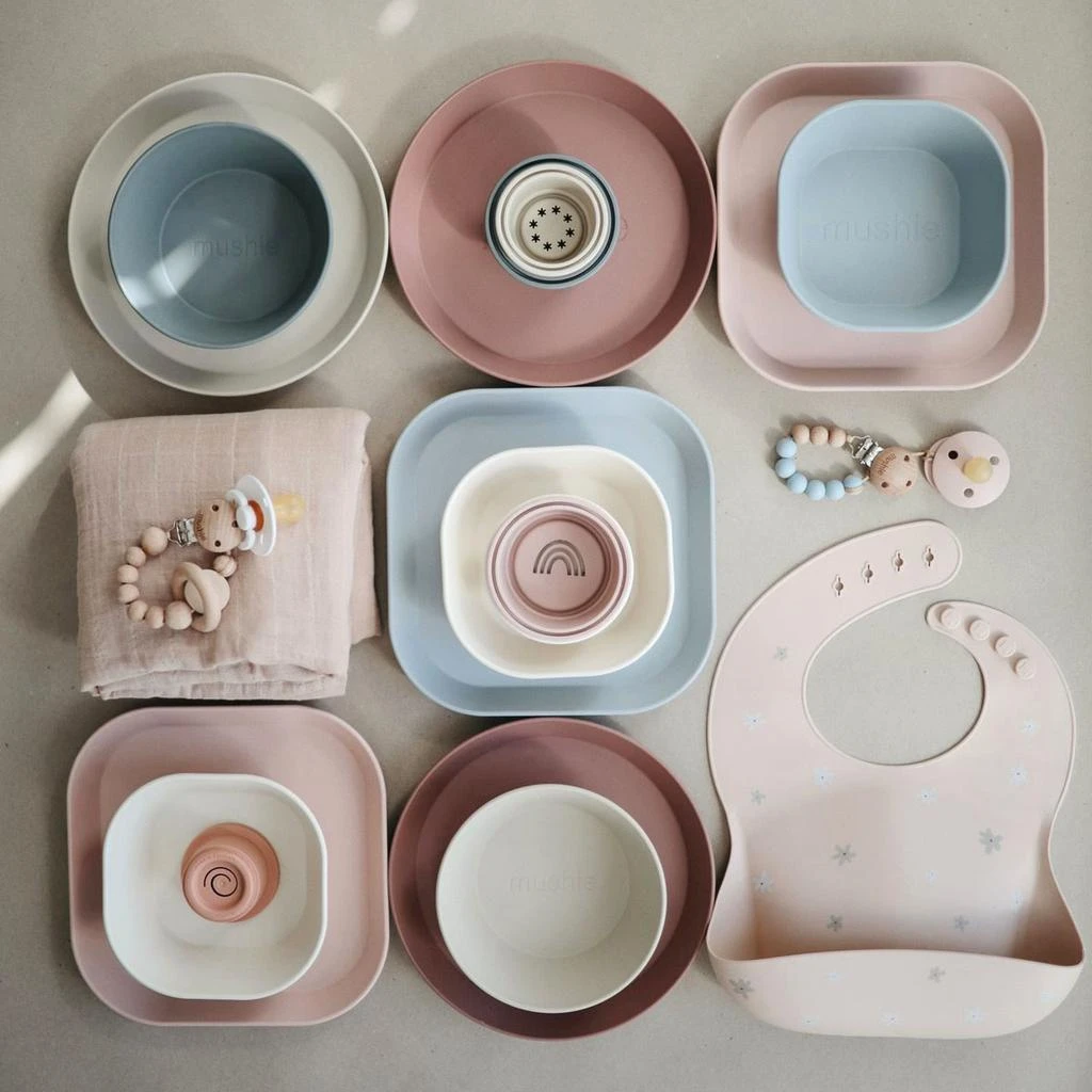 - Misky, talířky, příbory a lžičky Mushie
