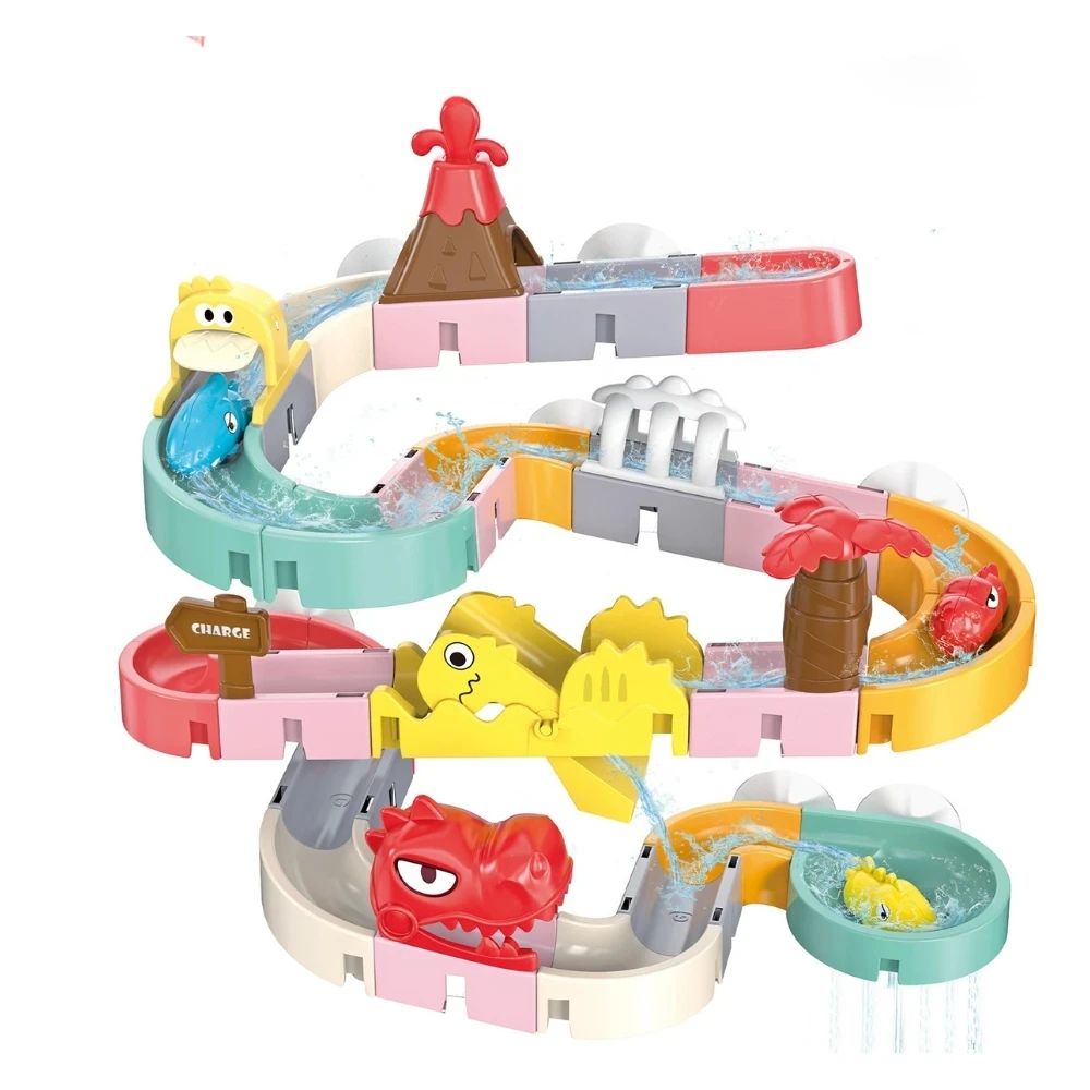 DIY Dino vodní dráha pro kuličky je ideální pro hraní samotné nebo pro společné stavění s přáteli či rodinou. Jednoduché spojování dílků umožňuje rychle měnit konfigurace a vytvářet nová dobrodružství.