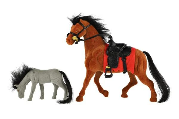 Kůň fliška 23 cm se sedlem s hříbětem