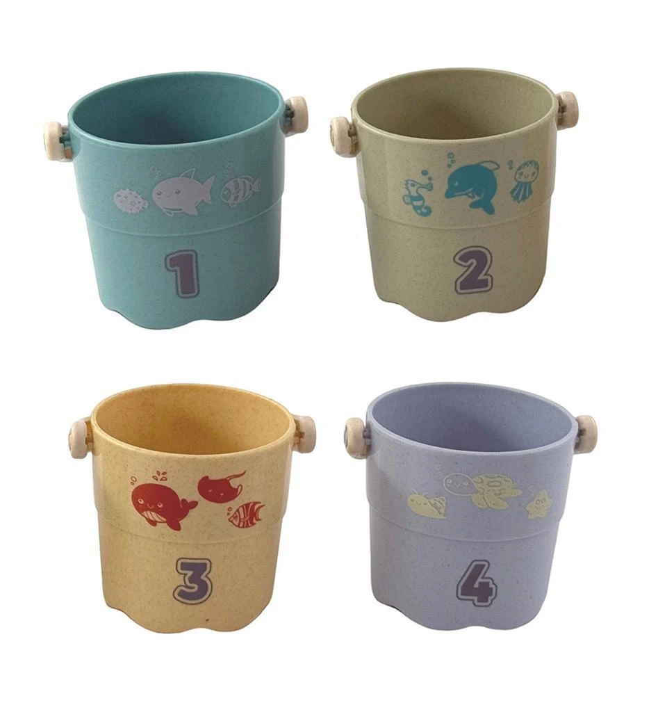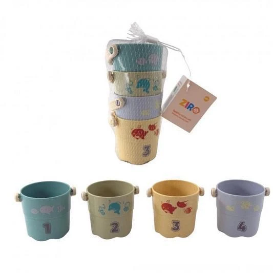Sada roztomilých kyblíčků ve veselých barvách nesmí chybět v žádné dětské vaničce. Můžete je vzít s sebou na pláž nebo na pískoviště.