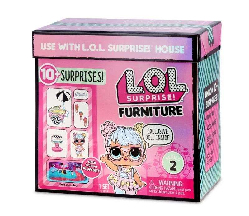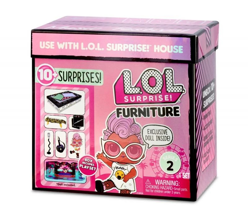 Obsah balení Jeden ze čtyř typů vybavení (ložnice, šatna, kosmetický koutek a auto). Nábytek lze umístit do jakékoliv části domu 1 panenka a doplňky.