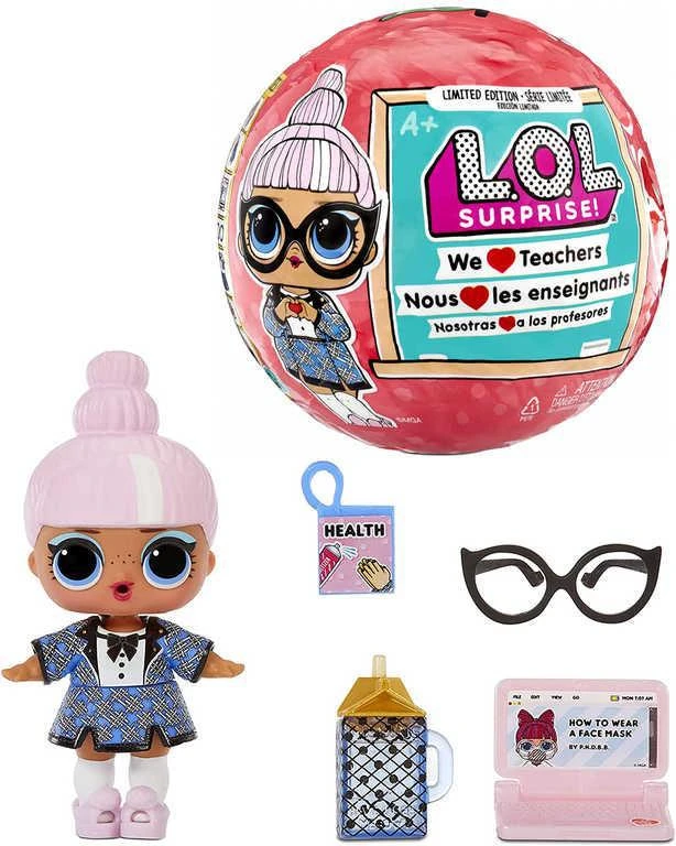 Sběratelské panenky L.O.L. Surprise na tebe čekají ve speciální kouli s oblečkem a doplňkem. Paní učitelka má stylový obleček a doplňky. Poté co si dohraješ, můžeš ji vložit do průhledné koule a postavit jako dekoraci na svůj stůl. L.O.L. Surprise umí plakat, čůrat, plivat nebo měnit barvu.