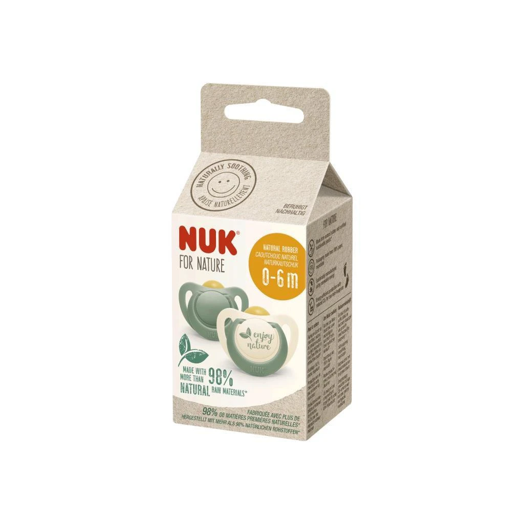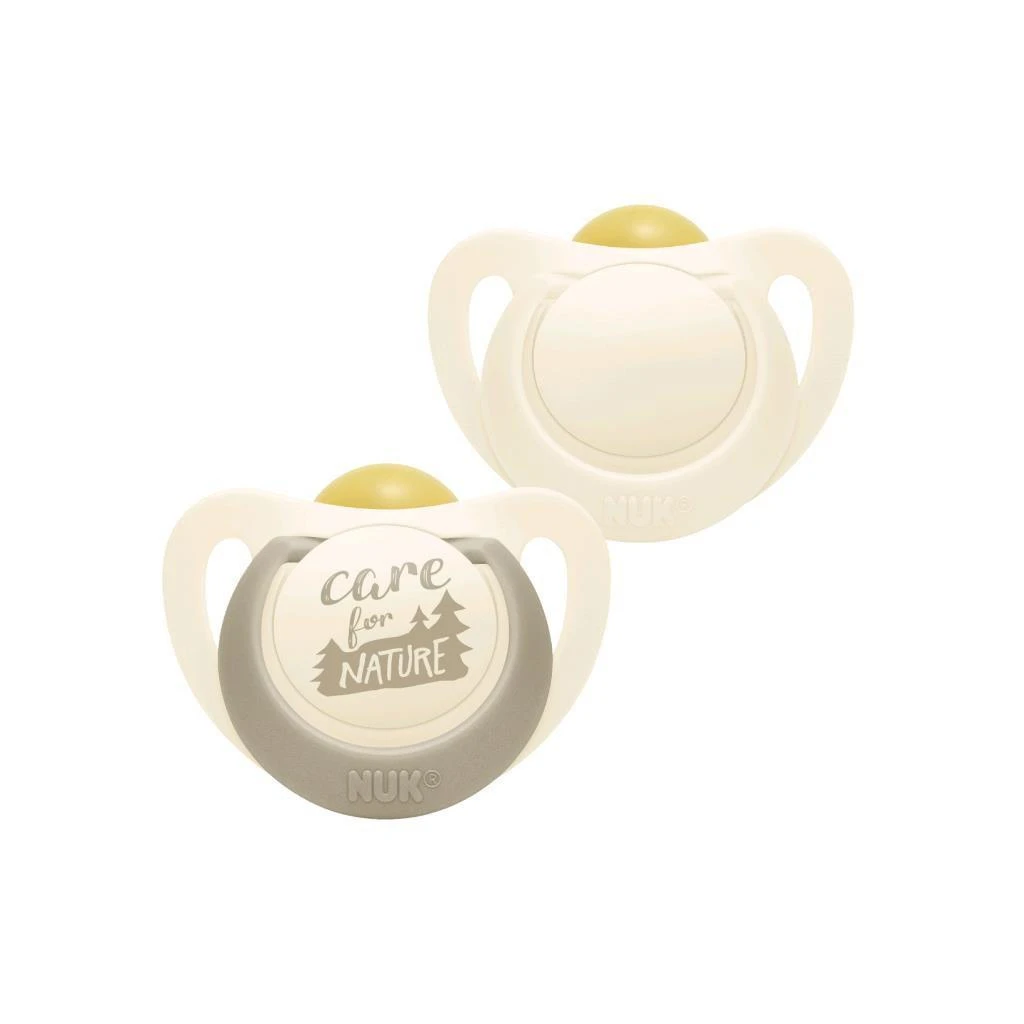 Latexový dudlík NUK for Nature, vhodný pro správný vývoj čelisti, z přírodního kaučukového latexu, 2 kusy, neobsahuje BPA.