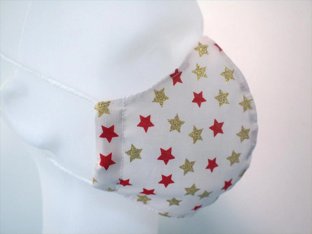 Látková respirační rouška - maska dámská jednovrstvá hvězdičky červená a zlatá