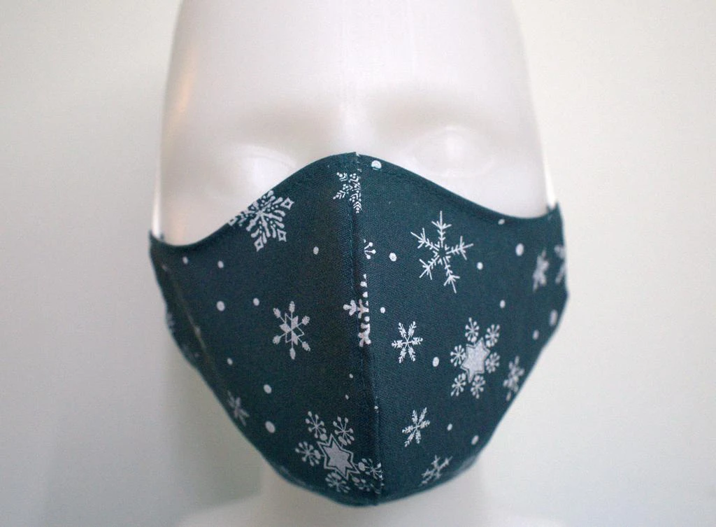 Látková respirační rouška - maska dámská jednovrstvá vločky petrolejová