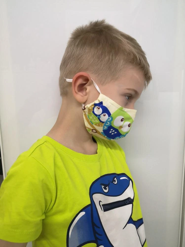Velice kvalitně provedená dětská rouška - maska na gumičky za ouška. Maska je dvouvrstvá s kapsičkou pro filtr. Vyrobena ze 100% bavlny. Je univerzální pro nejmenší do cca 6 let. V horní části je vystužena drátkem pro lepší těsnění nosu.