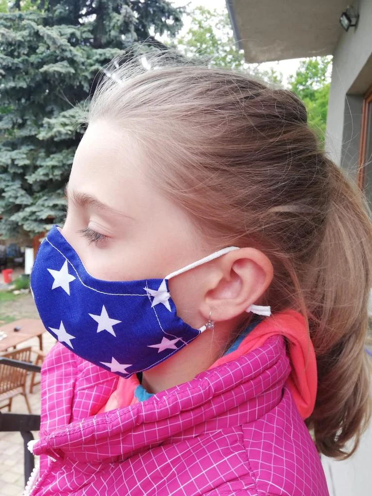 Velice kvalitně provedená dětská rouška - maska na gumičky za ouška. Maska je dvouvrstvá s kapsičkou pro filtr. Vyrobena ze 100% bavlny. Je univerzální pro děti do cca 12 let. V horní části je vystužena drátkem pro lepší těsnění nosu.