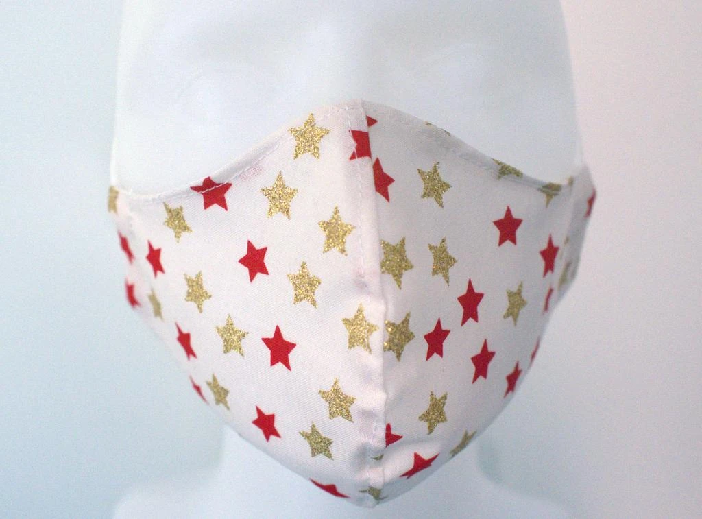 Látková respirační rouška - pro děti 3 - 6 let jednovrstvá hvězdičky červená a zlatá