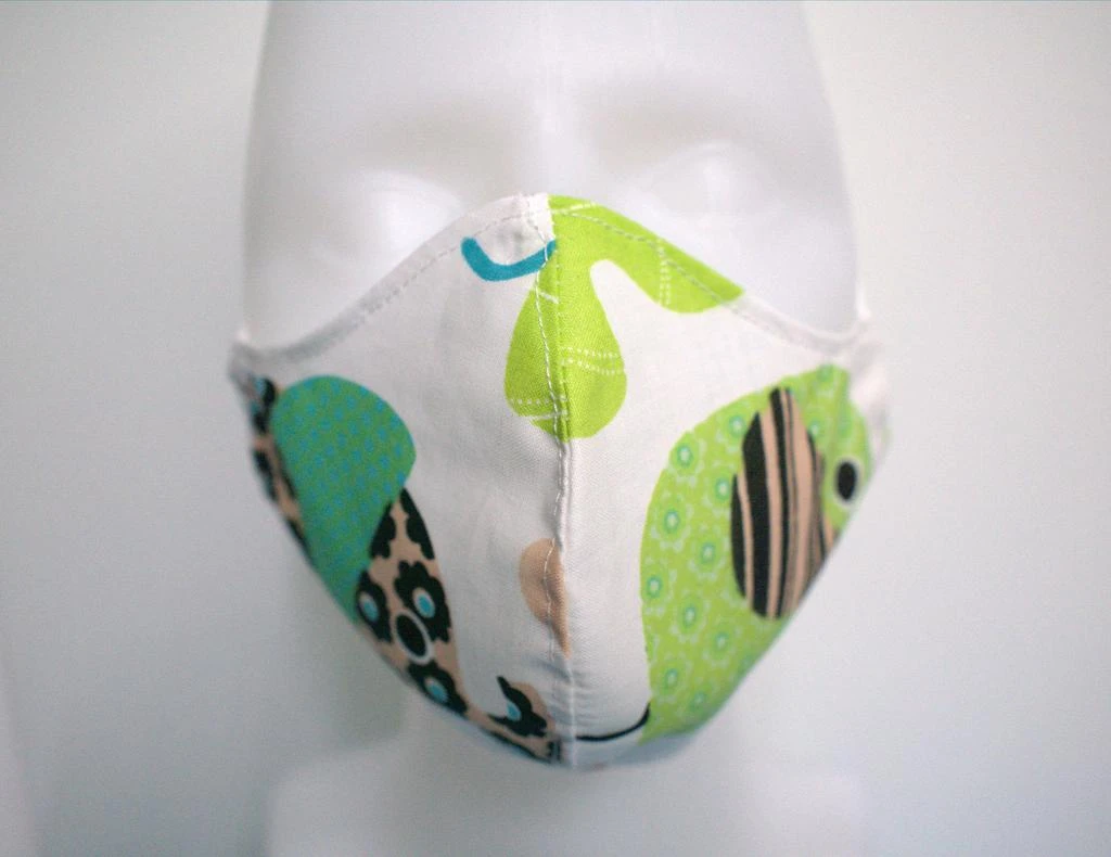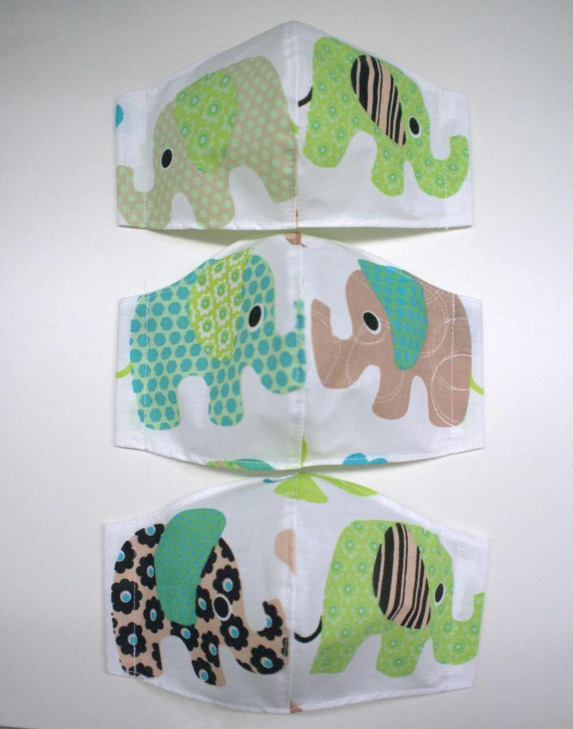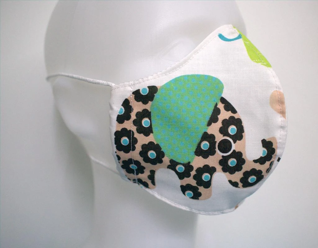 Látková respirační rouška - pro děti 3 - 6 let jednovrstvá Sloni mint