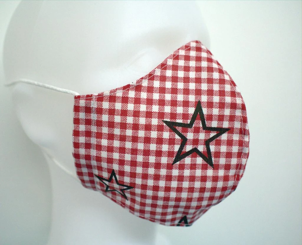 Látková respirační rouška - pro děti 7 - 12 let Červené káro - hvězdy