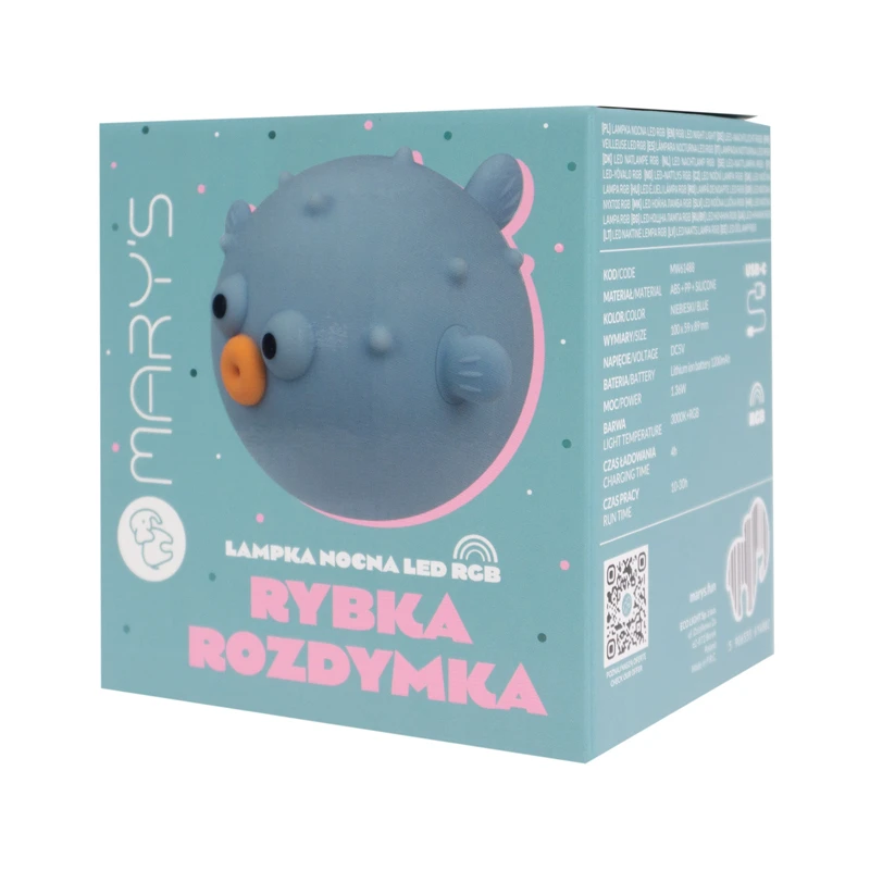 LED silikonová noční lampička dotyková Rgb Puffer Fish, modrá Mary's