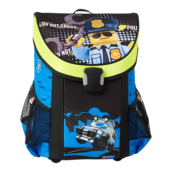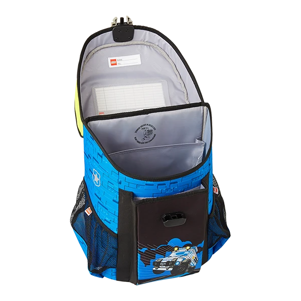 Po stranách se nachází 2 síťované kapsy, vpředu malá kapsa, do které se snadno vejde LEGO pouzdro. K zajištění vysokého pohodlí při nošení najdete v aktovce vnitřní přihrádku pro těžší předměty, která je udrží u zad a zajistí tak rovnoměrné rozložení hmotnosti, dále polstrované nastavitelné ramenní popruhy a nastavitelný hrudní popruh. Uvnitř v hlavní kapse najdete nejen rozvrh hodin, ale taky přezku na klíče, na kterou lze připojit například i LEGO peněženku či LEGO kapsičkou.