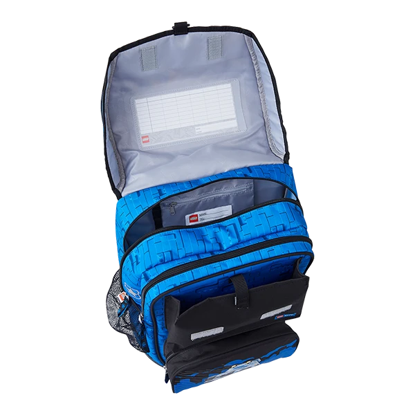 Aktovka nabízí vysoký komfort při nošení díky ergonomicky tvarovanému zadnímu panelu, nastavitelným a polstrovaným ramenním popruhům a nastavitelnému hrudnímu popruhu. V hlavní kapse najdete pásek z gumy, který udrží těžké předměty a knihy u zad, všitou jmenovku či poutko na klíče, na které je možné připojit například i LEGO peněženku či LEGO kapsičku. Na přední straně aktovky se nachází speciální kapsa na penál. Na stranách najdete průhlednou a síťovanou kapsu např. na láhev s vodou, ovoce, či drobné předměty.