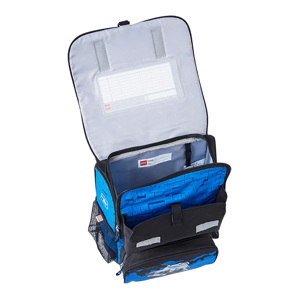 a stranách najdete průhlednou a síťovanou kapsu např. na láhev s vodou, ovoce, či drobné předměty. V hlavní kapse najdete přihrádku pro těžší předměty, která je udrží u zad a zajistí rovnoměrné rozložení hmotnosti, všitou jmenovku či poutko na klíče, na které je možné připojit například i LEGO peněženku či LEGO kapsičku.