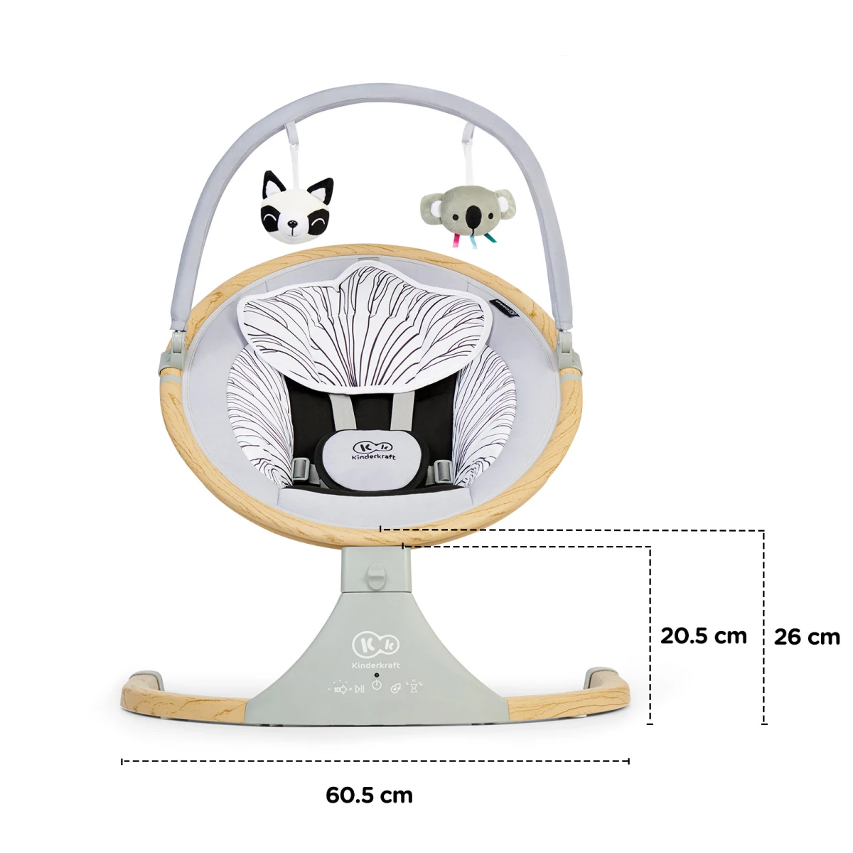 - Kolébka má až 12 zabudovaných melodií s ovládáním hlasitosti. Pokud dítě pomalu usíná, stačí hudbu ztlumit jedním kliknutím.
