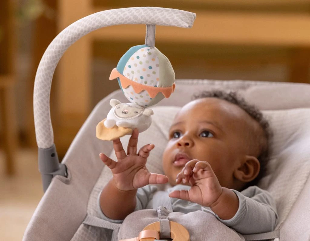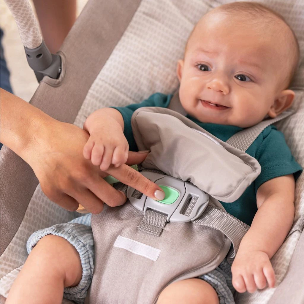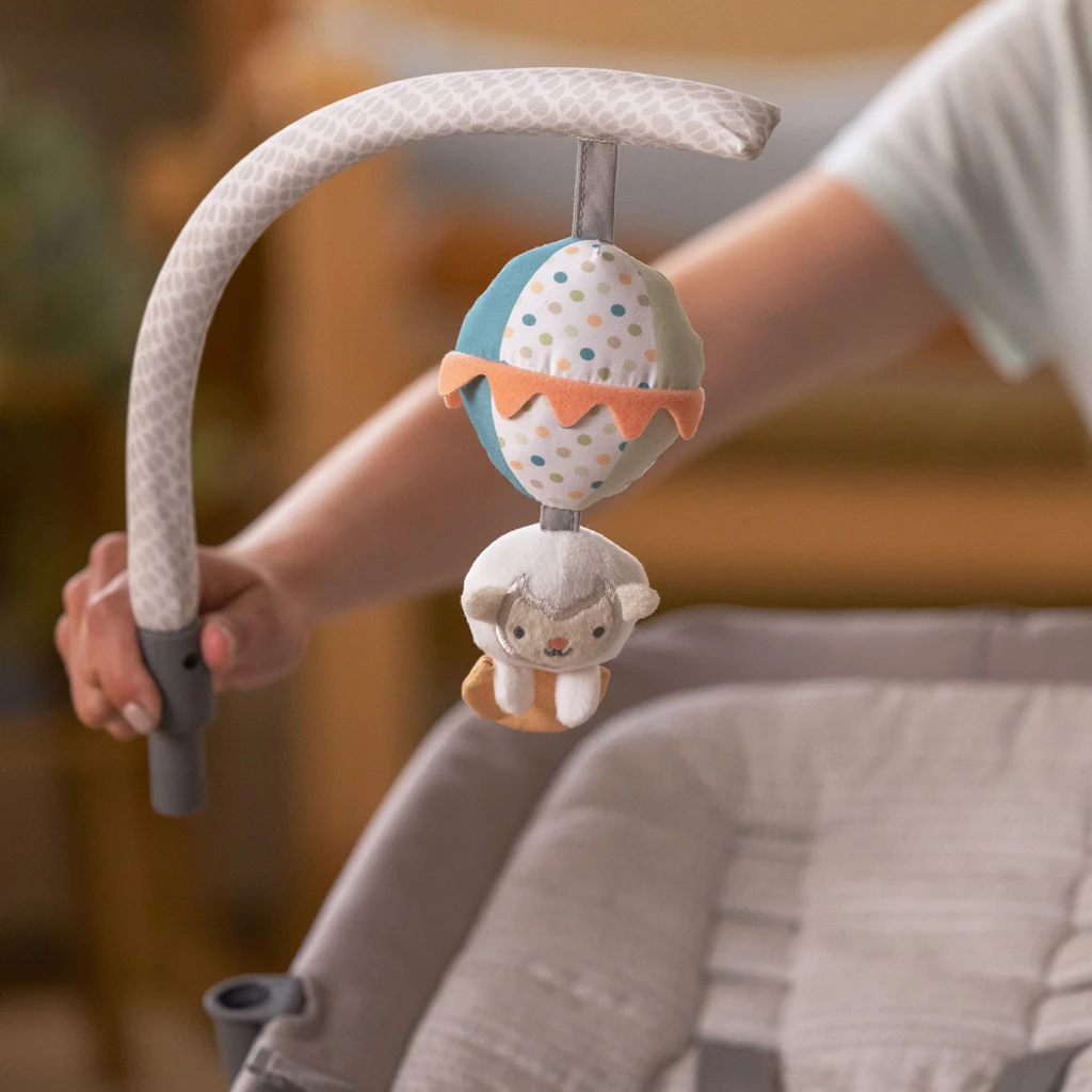 - Ovládání je intuitivní díky technologii GentleTouch™, kterou hravě zvládnou rodiče, prarodiče i pečovatelé. Vaše dítě se může pobavit s odnímatelnou hrazdičkou, na které visí plyšový balón a dřevěný kroužek se štítky na zkoumání.