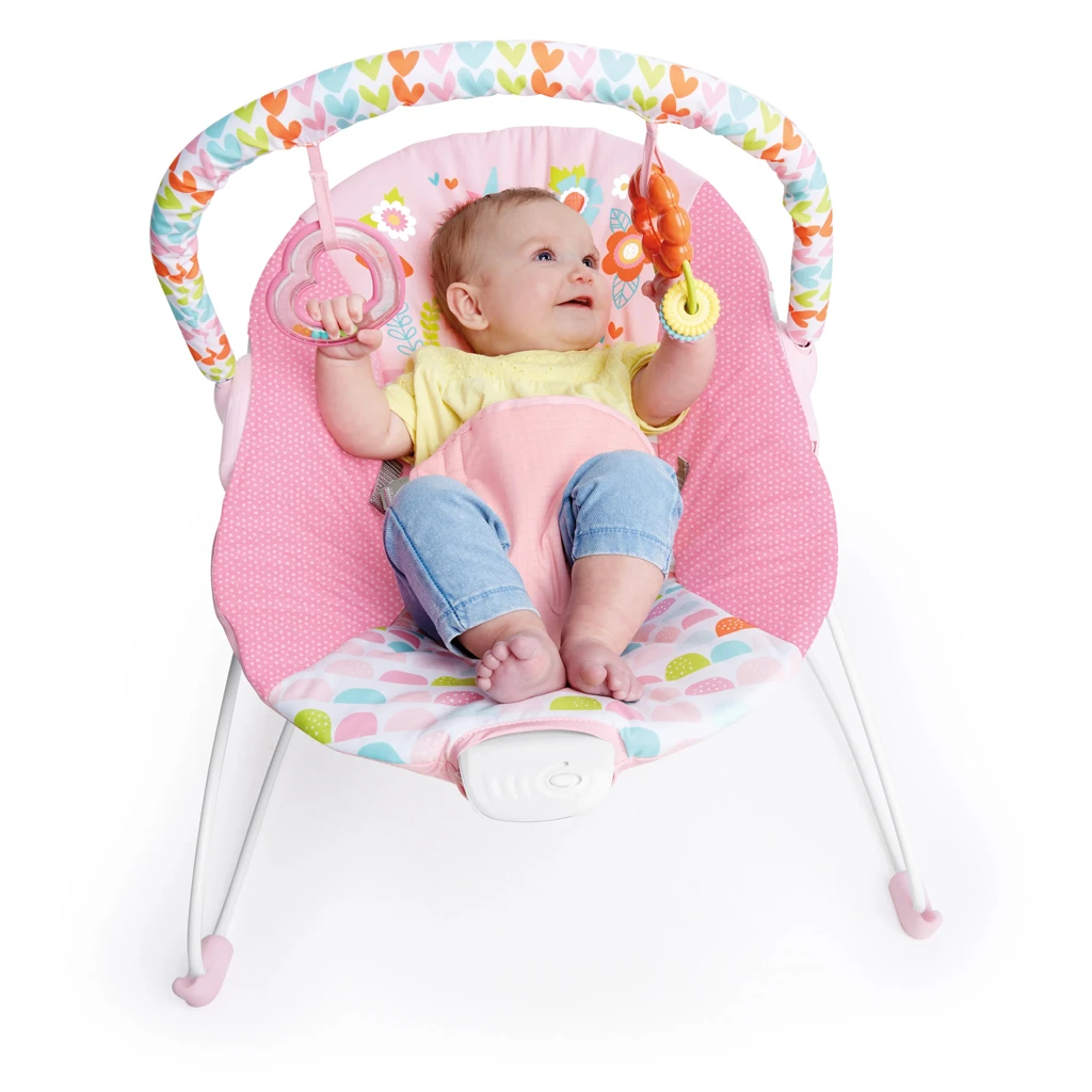 Vaše malá princezna se bude s radostí natahovat po chrastítku ve tvaru srdíčka nebo po pestrobarevné hračce s korálky ve tvaru květu. Měkké růžové sedátko s jemným polstrováním ji udrží v bezpečí a pohodlí díky tříbodovému bezpečnostnímu pásu a protiskluzovým nožičkám. S malým jednorožcem v jeho oblíbeném lehátku si můžete konečně na chvíli odpočinout i vy – přičemž stále ji budete mít na očích.