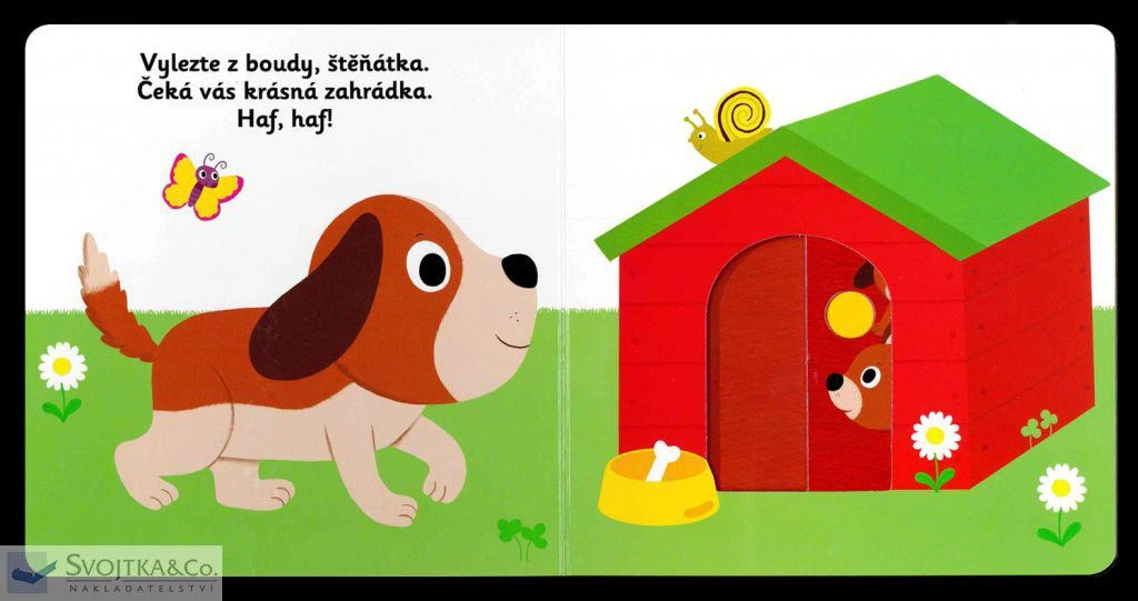 Štěňátko a chce si hrát! Ale nejdřív se musí posilnit. A už běží za kamarády. Objevovat svět s tímto leporelem pro nejmenší děti od jednoho roku je tak zábavné! Pevné stránky s pohyblivými prvky procvičí i jemnou motoriku. Stačí jen vložit prstík do správného otvoru a lehce vysunout, zatáhnout nebo otočit a hned bude váš malý objevitel znát odpovědi.