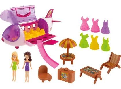 Plastové letadlo pro panenky s doplňky. Balení obsahuje: letadlo, nábytek, kufr, 2 panenky, 6 druhů oblečení a další doplňky.