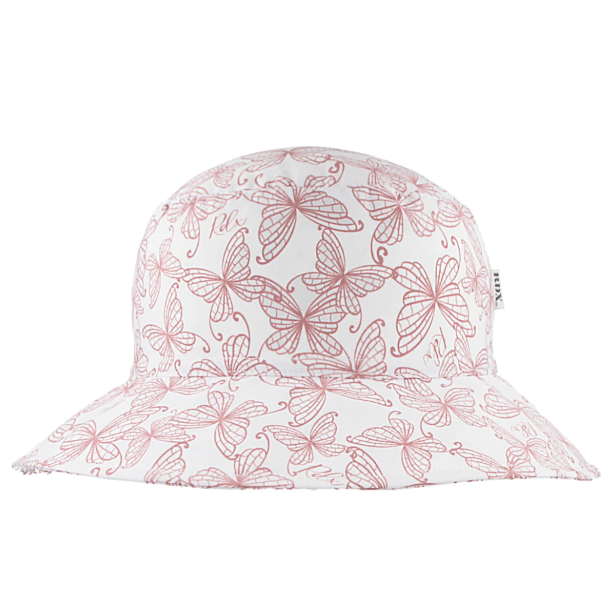 Letní dívčí klobouk s velkou krempou motýlci starorůžová na bílé