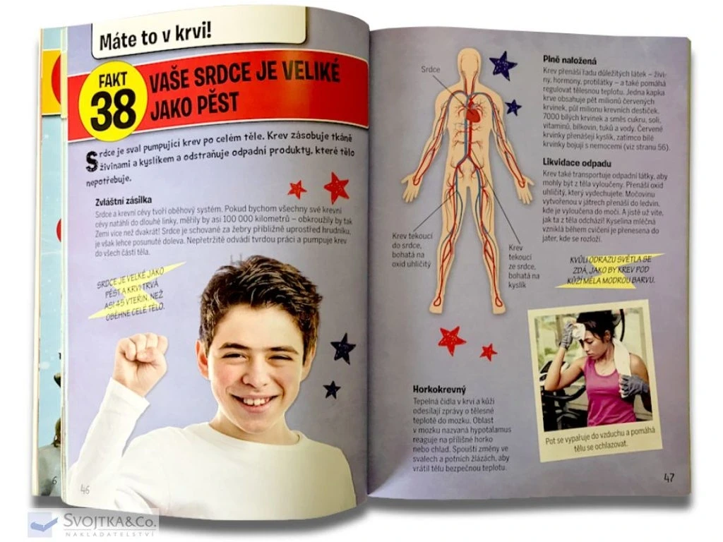 Sto zajímavostí o lidském těle a ještě jedna navíc! Zapomeňte na nudné učebnice biologie, tady na vás čekají nevšední a pozoruhodná fakta, o nichž jste zřejmě ani neměli tušení. Věděli jste, že kosti jsou z jedné pětiny tvořeny vodou? Že se písničky ukládají do jiné části mozku než ostatní vzpomínky? Že naše prsty nemají svaly? Že se během dne zmenšujeme? Nebo že můžeme mít alergickou reakci na vlastní telefon? Tato kniha je napěchována množstvím zábavných vědomostí a faktů a dozajista rozšíří vaše obzory. Přesvědčte se, co všechno vaše tělo během dne zvládne, a ohromte svými vědomostmi kamarády a spolužáky ve škole.