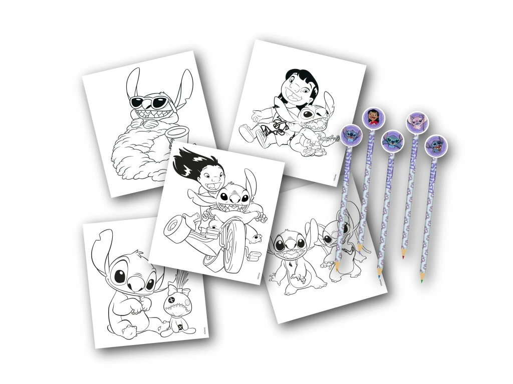 Obsahuje 32 omalovánek s veselými motivy Stitche a jeho přátel, které děti zabaví na dlouhé hodiny. Součástí balení je také šest pastelek a šest gum, takže malí umělci mají vše potřebné pro kreslení i opravy svých výtvorů po ruce.