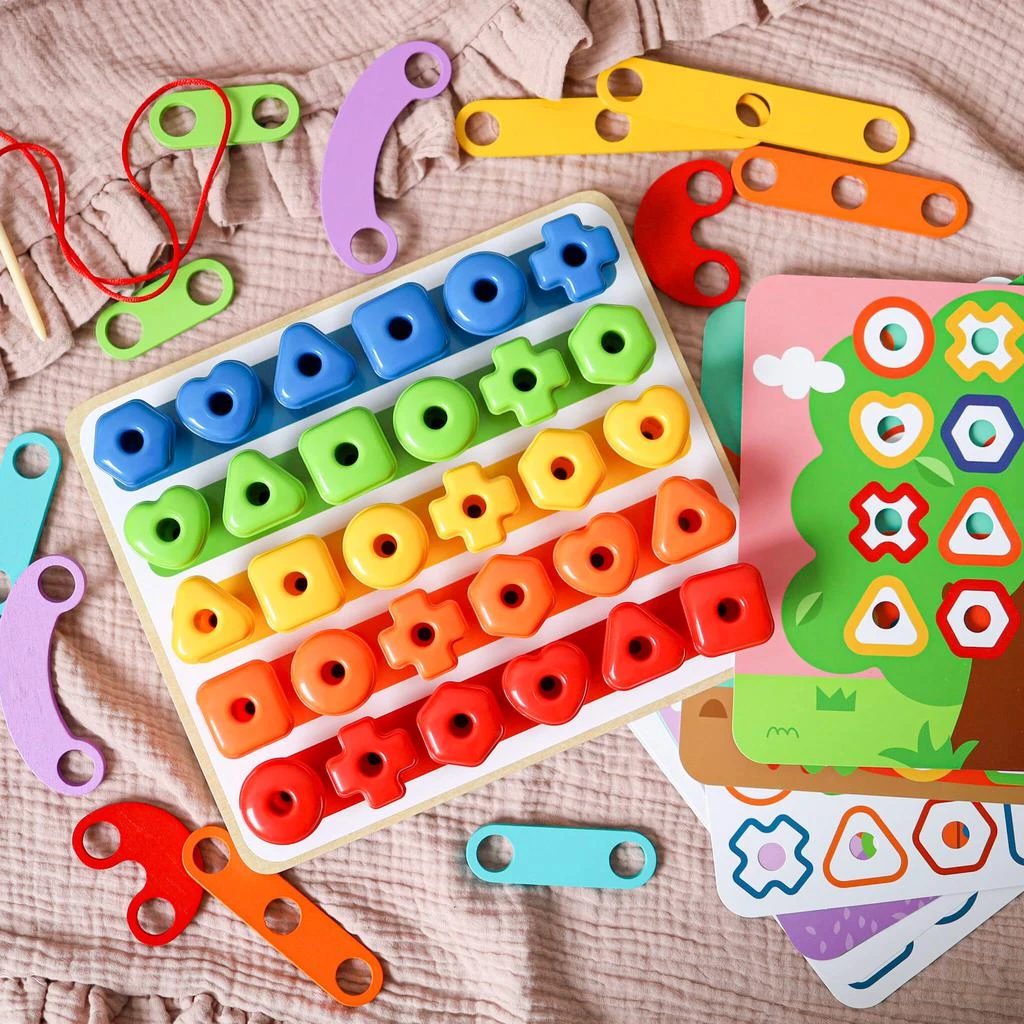 Manipulace s kolíčky, skládání dílků a navlékání trénují dětské prstíky a připravují je na další dovednosti – například držení tužky nebo zapínání knoflíků.