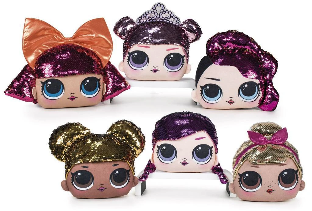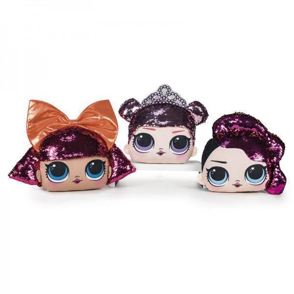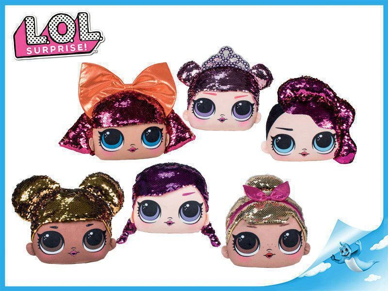 Krásný polštářek ve tvaru velmi oblíbené panenky L.O.L. Po přejetí po flitrech se barva změní.