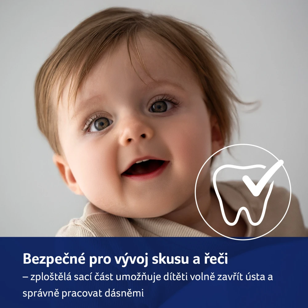 Špička je vyrobena z odolného silikonu, který se během používání nedeformuje v ústech dítěte.