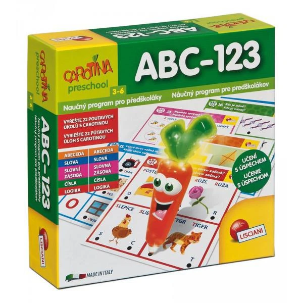 Vstupte spolu s Carotinou do světa písmen a čísel! Učení bude velmi snadné: pokuste se s pomocí CAROTINY zodpovědět otázky na kartách tak, že se špičkou tužky dotknete černých bodů. Pokud odpovíte správně, tužka svítí a jásá!