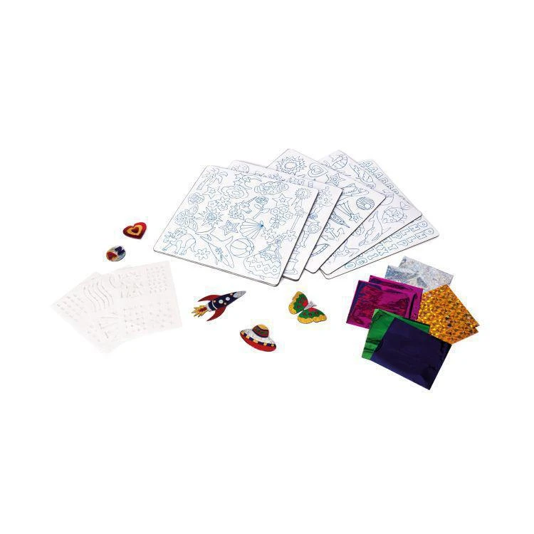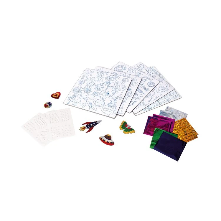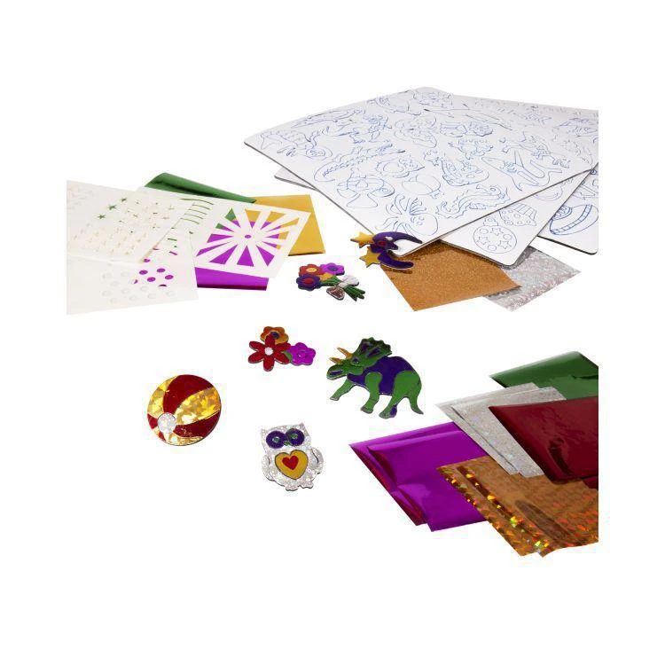 Sada obsahuje: 8 archů samolepek, 58 různobarevných fólií, 3 listy šablon a návod.