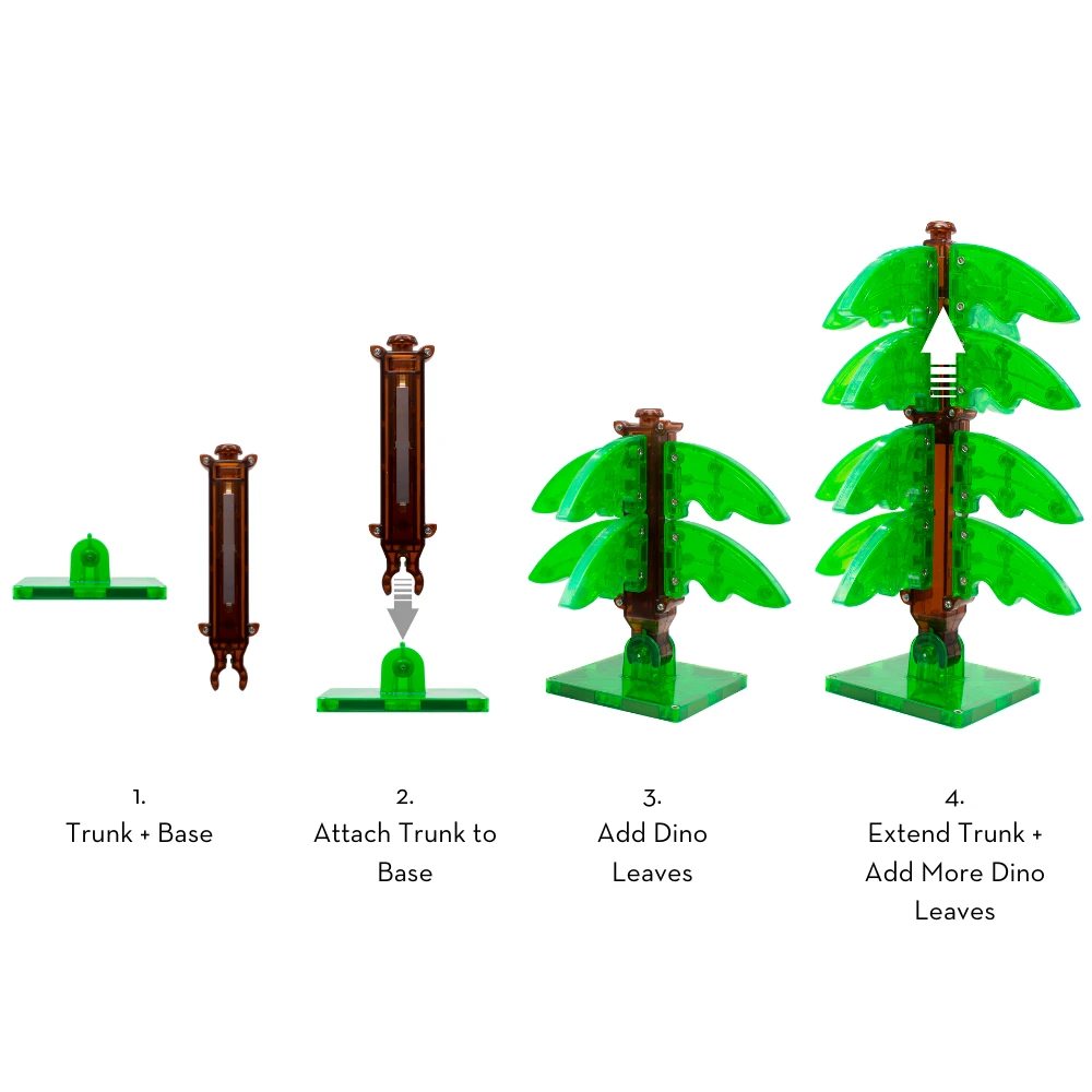 Obsahuje šest magnetických figurek dinosaurů, které se liší velikostí a všechny mají pohyblivé části pro ještě zábavnější imaginární hru. Ve spojení s magnetickými stromy a listy si vybudujete dokonalý tropický ráj. Děti kromě jemné motoriky a logiky zároveň rozvíjí zájem o paleonotologii. Stavebnice je kompatibilní se všemi sadami MAGNA-TILES®.