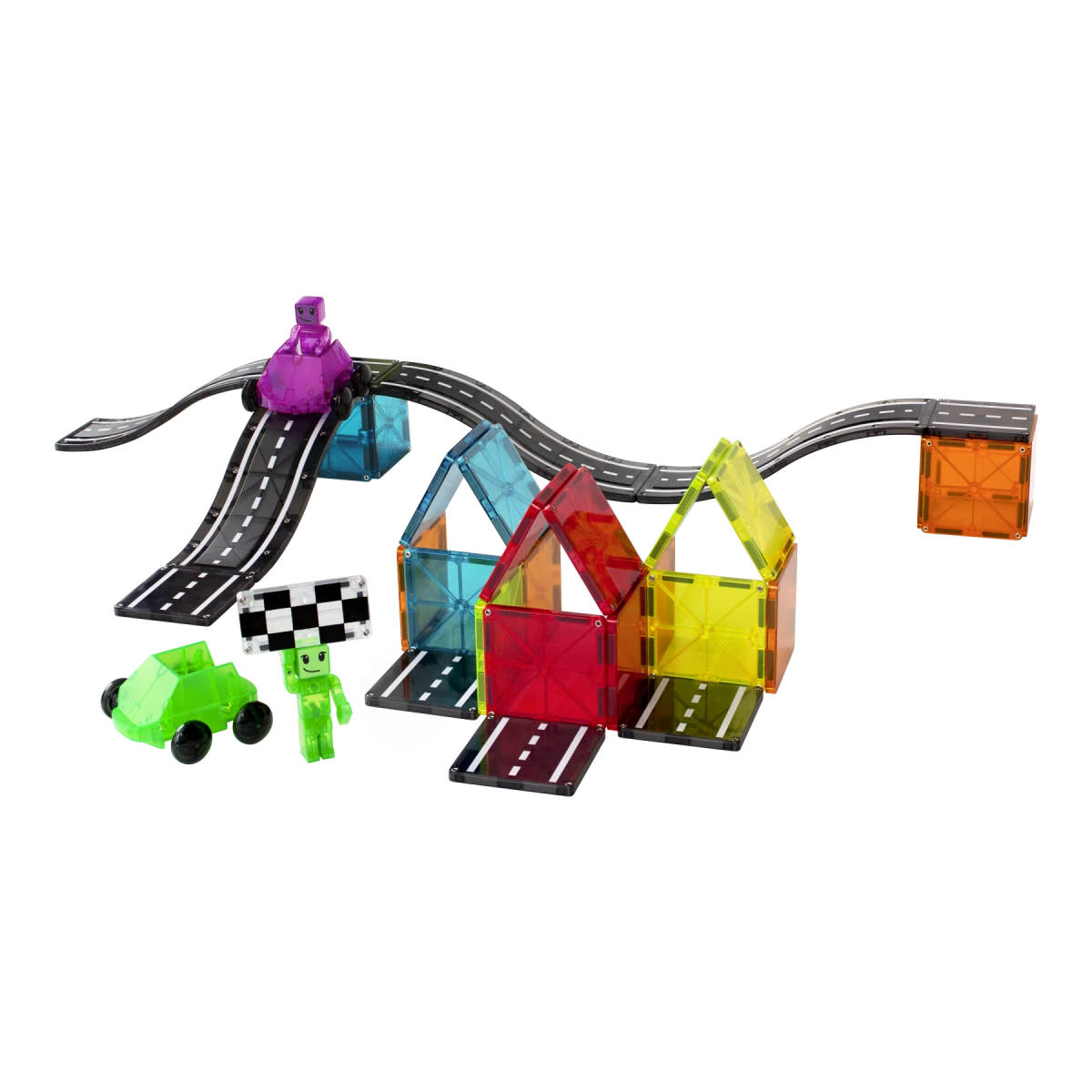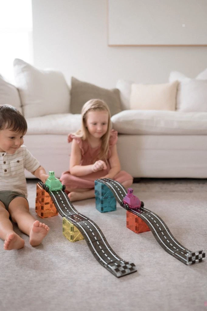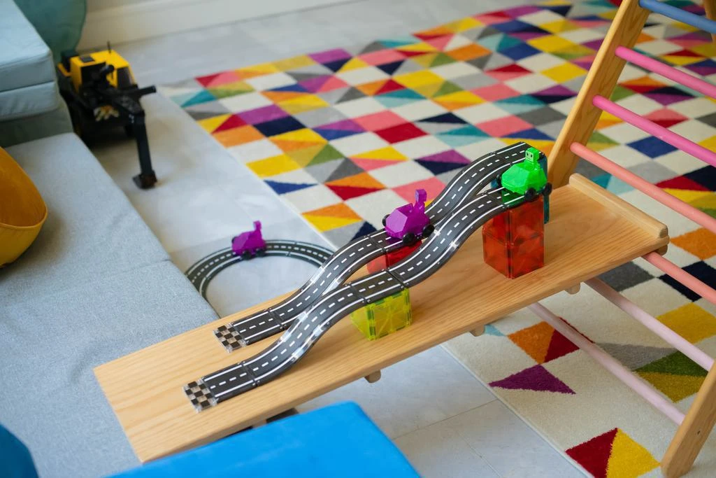 Doplňte svou stavebnici MAGNA-TILES® o vzrušující sjezdy a nájezdy, a to pouhými několika cvaknutími. Rozšiřující sada s kopcovitými silnicemi přináší nový rozměr vašim stavbám.