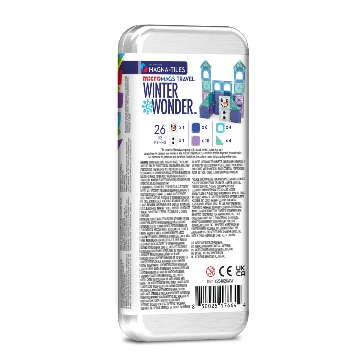 Magnetická stavebnice MAGNA-TILES® microMAGS Winter Wonderland Travel Set – 26 dílů je perfektní dárek pro malé tvůrce, kteří milují zimu, tvoření a zábavu na cestách.