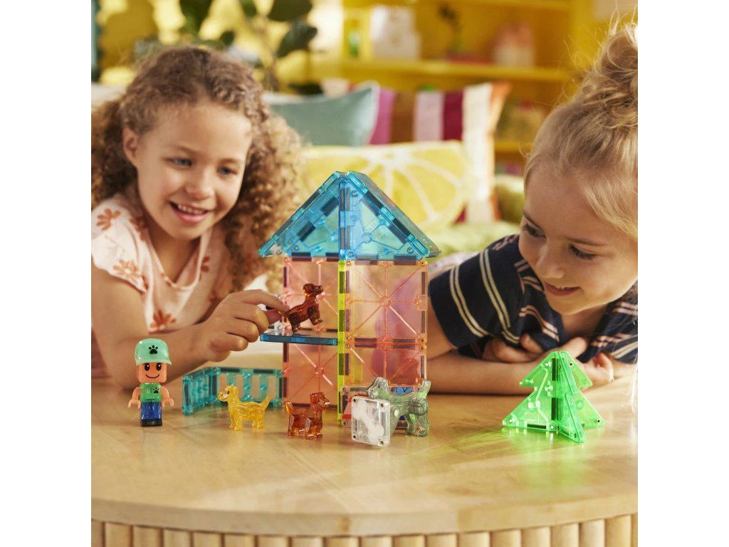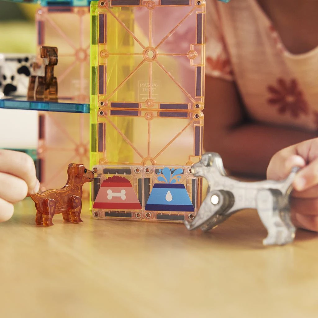 Vítej v Puppy Parku MAGNA-TILES, kde se malá štěňátka mění na velké dobrodruhy! Postav jim bazén, výcvikovou dráhu nebo útulný koutek k odpočinku a sleduj, jak se tvůj vlastní svět plní štěkáním, zábavou a fantazií.