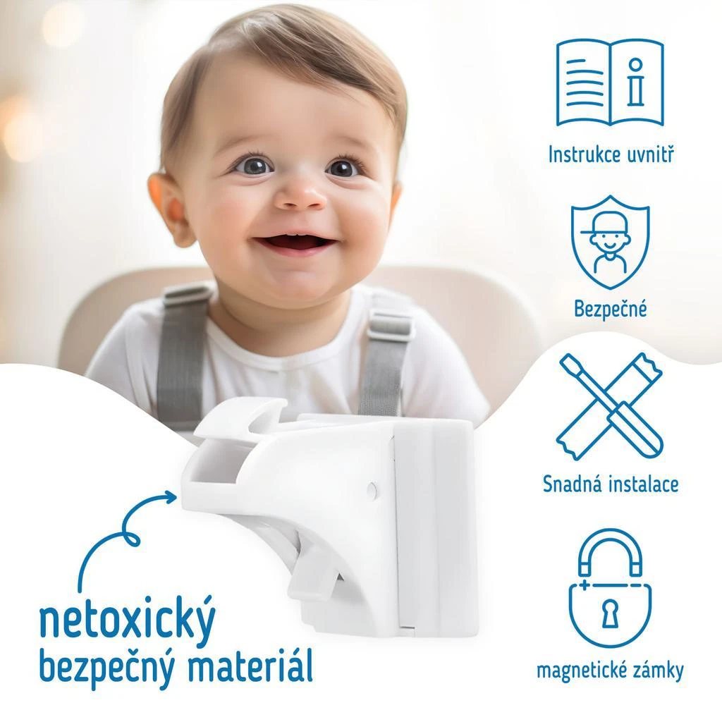 Magnetické zámky bílé na skříně a zásuvky sada 4 ks + 1x magnetický klíč Sipo