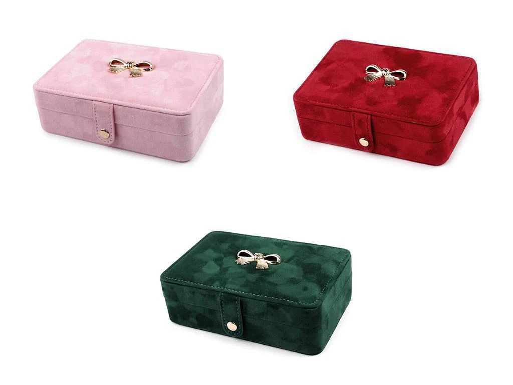 Malá šperkovnice s mašličkou semiš 11x16x5,5 cm