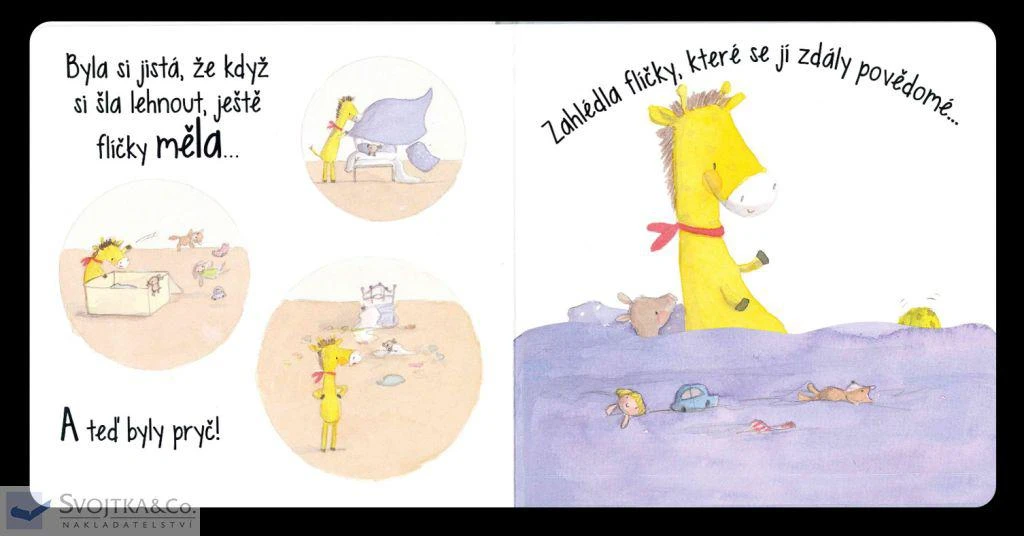 Jednoho dne žirafa zjistila, že zmizely všechny její flíčky. Pomůžeš jí je najít? V této hravé interaktivní knížce s odklápěcími okénky a veselými ilustracemi se děti připojí k dobrodružství malé žirafy a budou společně pátrat po tom, kde se flíčky ukryly. Každé otočení stránky přináší nové překvapení a zábavu!