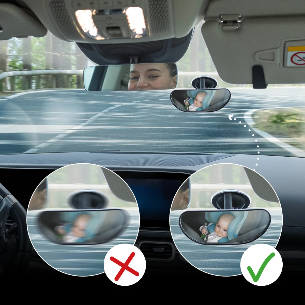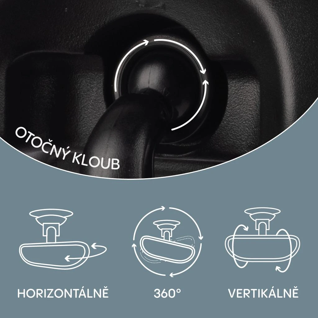 S naším kompaktním zpětným zrcátkem budete mít perfektní přehled o tom, co se děje na zadních sedadlech. Jeho vypouklý design výrazně rozšiřuje zorný úhel, takže můžete snadno a bezpečně sledovat své dítě i při řízení. Otočnost o 360° vám umožní přizpůsobit polohu zrcátka přesně podle vašich potřeb, což zajišťuje pohodlné používání při každé jízdě.