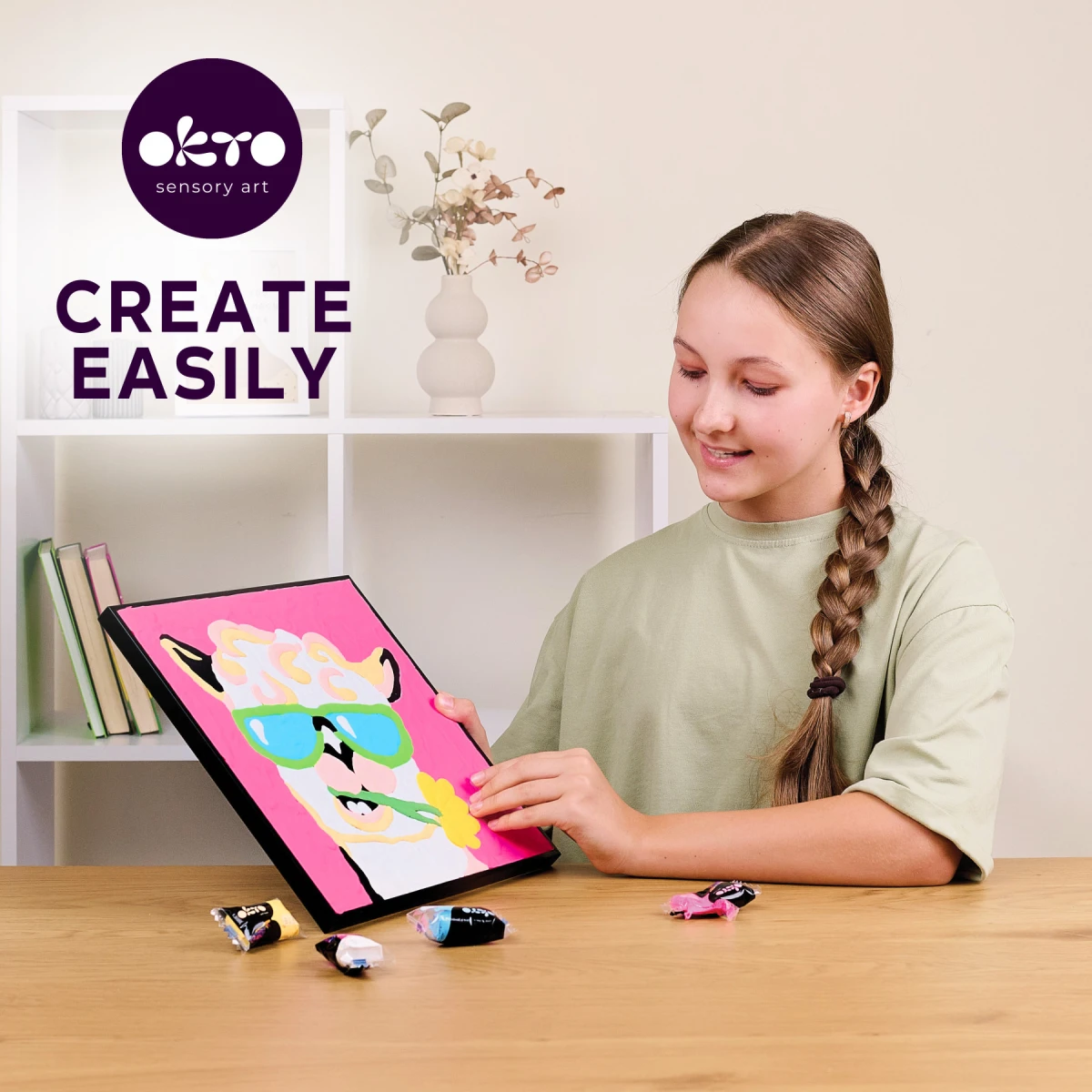 Značka OKTO Sensory Art pochází z Ukrajiny a specializuje se na kreativní a senzorické sady, které propojují modelovací hmotu s výtvarnou tvorbou. Všechny sety jsou navrženy tak, aby rozvíjely jemnou motoriku, podporovaly soustředění a zároveň přinášely relaxační zážitek. Produkty jsou vyráběny z kvalitních a bezpečných materiálů a po dokončení slouží jako originální dekorace. Firma je vedená ženami a její výrobky jsou certifikované ve více než třiceti zemích světa.