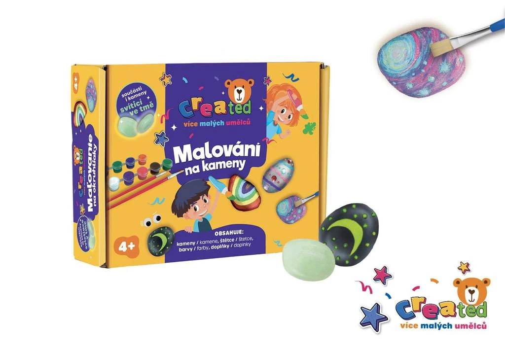Malování na kameny/oblázky svítící ve tmě s barvami a štětci Created