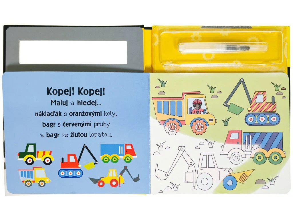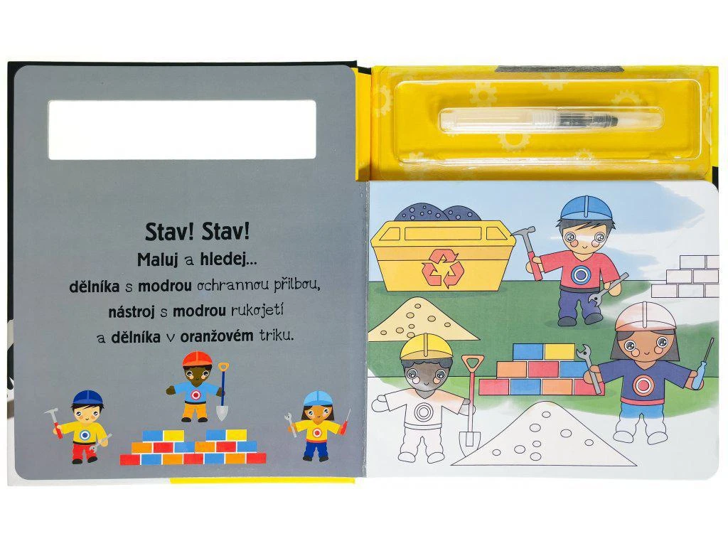 Užij si malování bez nepořádku s těmito znovupoužitelnými omalovánkami. Přetři obrázky vodou a hledej na stránkách ukryté dělníky, nástroje a silné stroje. Děti si s těmito omalovánkami s vodou užijí mnoho zábavy, procvičí si motoriku, trpělivost a poznávání barev. Až stránky uschnou, děti se mohou do vymalovávání pustit znovu! Znovu! A znovu!