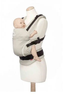 Měkká, ale pevná látka obepíná tělo neseného dítěte a imituje tak klasické nosící šátky.