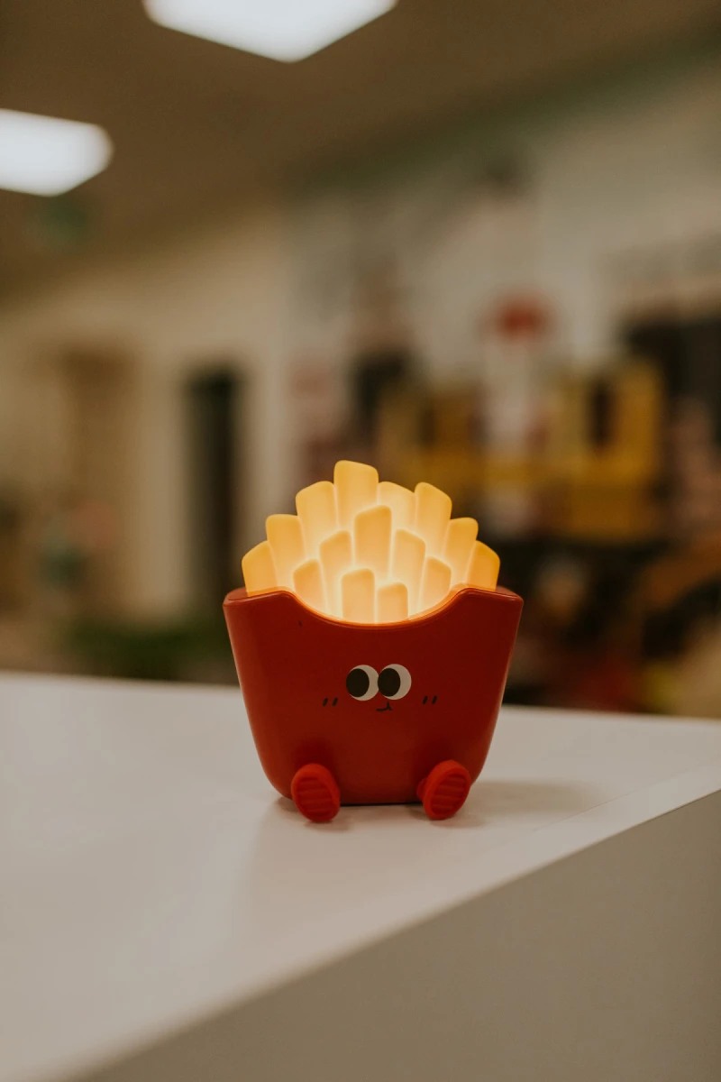 LED silikonová noční lampička ve tvaru hranolků je hravým a originálním doplňkem, který vytvoří příjemnou atmosféru v dětském pokoji a zároveň poskytne jemné světlo pro klidné usínání.