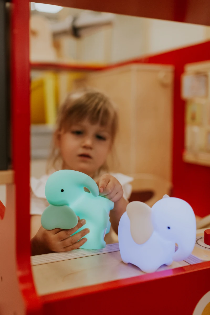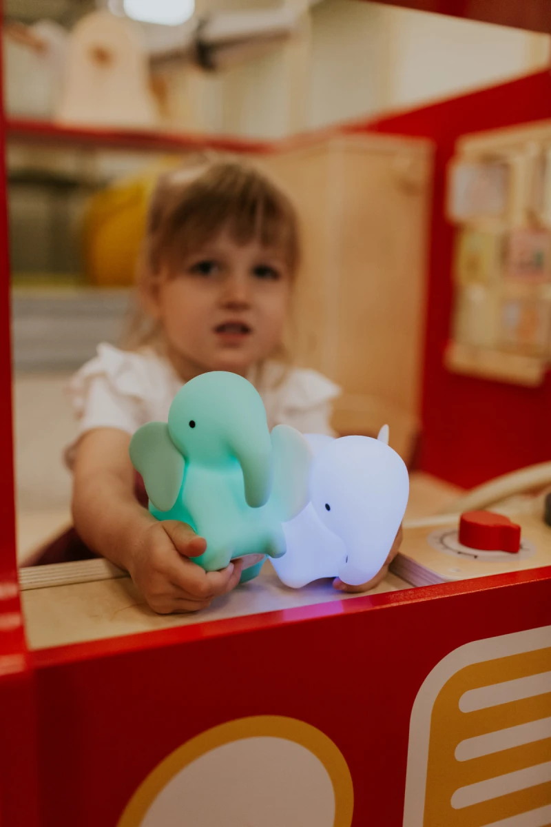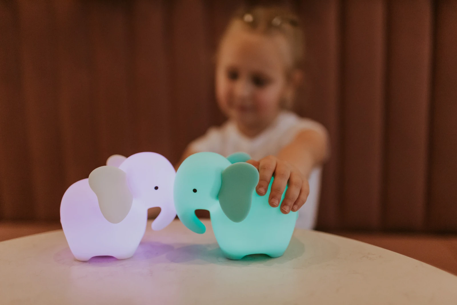 Silikonová noční lampička ve tvaru slona přináší do dětského pokoje jemné, barevně nastavitelné osvětlení s praktickým dálkovým ovladačem, které navozuje příjemnou atmosféru pro usínání i večerní odpočinek.