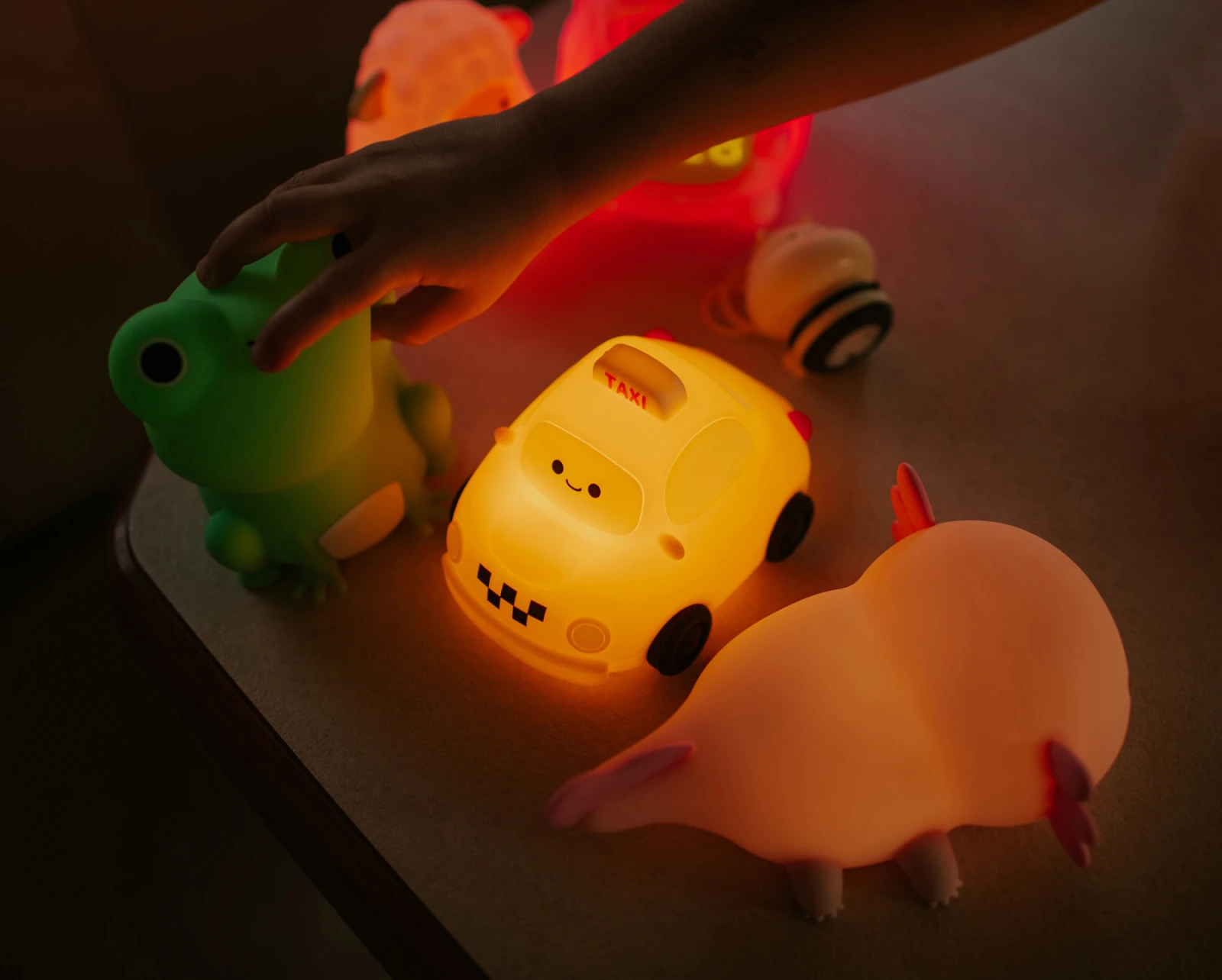 LED silikonová noční lampička stmívatelná a dotyková ve tvaru taxi je praktickým a hravým doplňkem, který díky jemnému světlu a snadnému ovládání vytváří příjemnou atmosféru pro večerní odpočinek i klidné usínání.