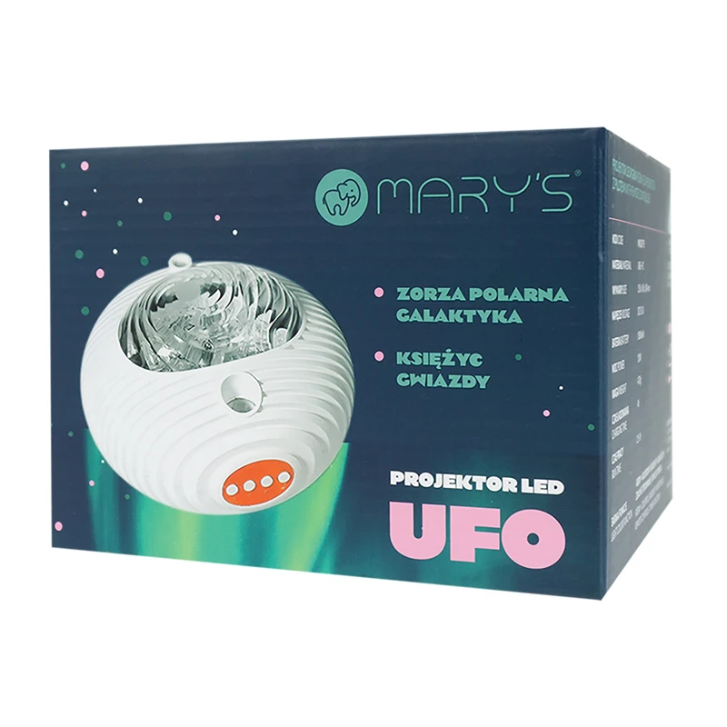 Projektor s dálkovým ovladačem ve tvaru Ufo vytváří jedinečnou světelnou atmosféru, která promění každý pokoj v hravý a uklidňující prostor ideální pro odpočinek i usínání.