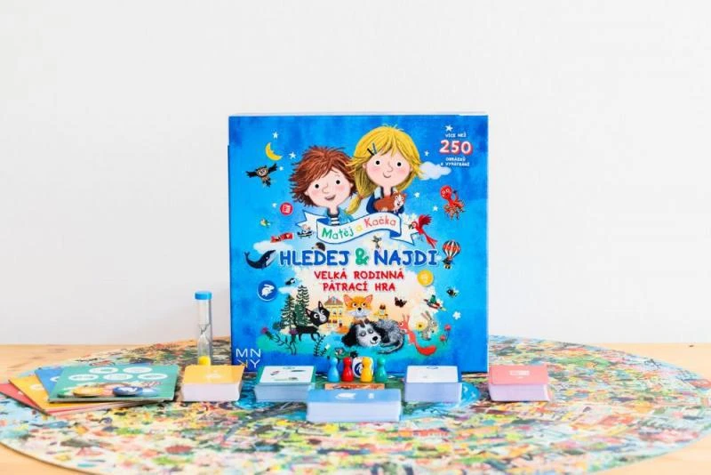 Barevný svět Matěje a Kačky je fascinující. Ponořte se do něj a najděte na herním plánu motivy z kartiček dřív, než skončí časový limit nebo než vás předběhne protihráč. Každý z hráčů musí splnit úkoly z pěti kategorií. Za každý splněný úkol získá žeton, který umístí na svou kartu hráče. Kdo jako první splní všechny kategorie úkolů a nasbírá všech pět žetonů, vyhrává hru! Kartičky s úkoly jsou rozdělené do tří kategorií podle obtížnosti a herní plán je oboustranný – na jedné straně je jednodušší a na druhé složitější varianta hry. To umožňuje maximální přizpůsobení věku hráčů.