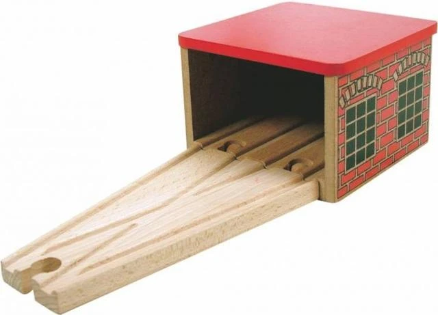 Balení obsahuje: 1 depo na 2 lokomotivy, 1 rovná výhybka
